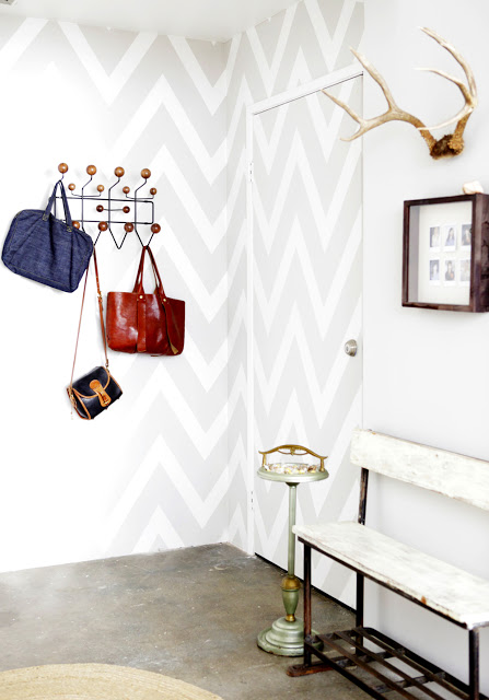 Oohh I think my favorite things are the plant on the wall in the first picture, and the chevron design on the wall and door in the other picture. Totally fun. Thanks for sharing