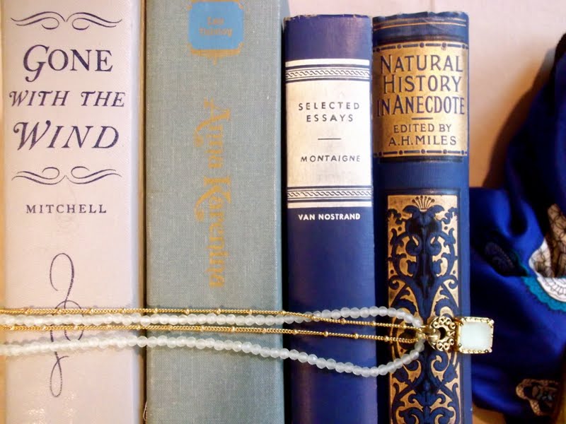 I have so far resisted bringing vintage books home, though I love them, because I move around a lot and books are heavy! But these are beautiful! And i love those necklaces too!