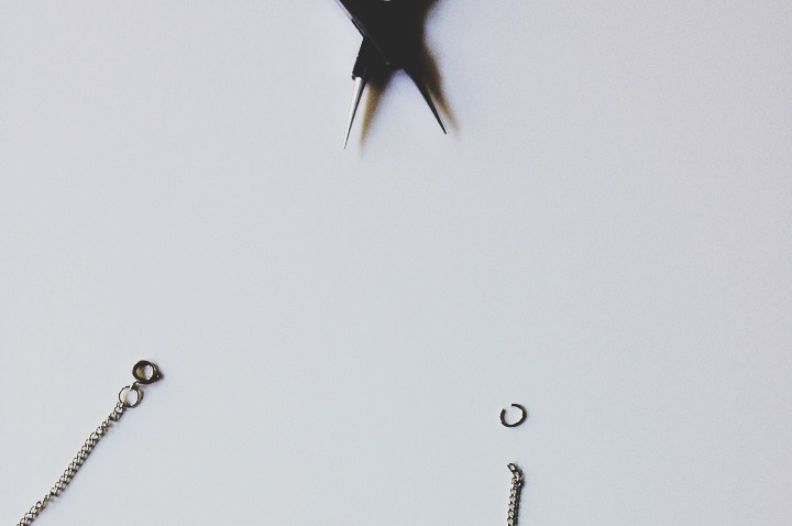 I bought the tubing and copper couplers at Lowe’s. The silver chain and jewelry clasp came from Michaels. And the three tools, just from around the house!