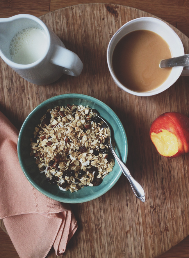 And that’s it – simple, right!? This recipe doesn’t make much (maybe enough for 1-2 breakfasts for two), but it’s a way to make granola without an oven, and it’s really tasty!