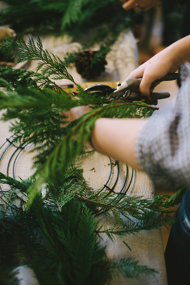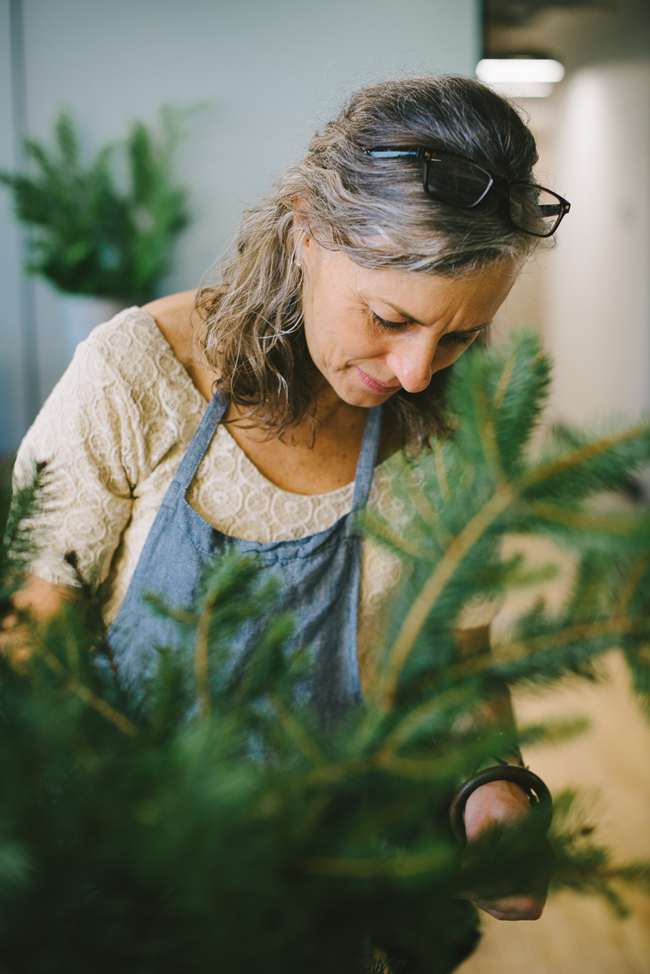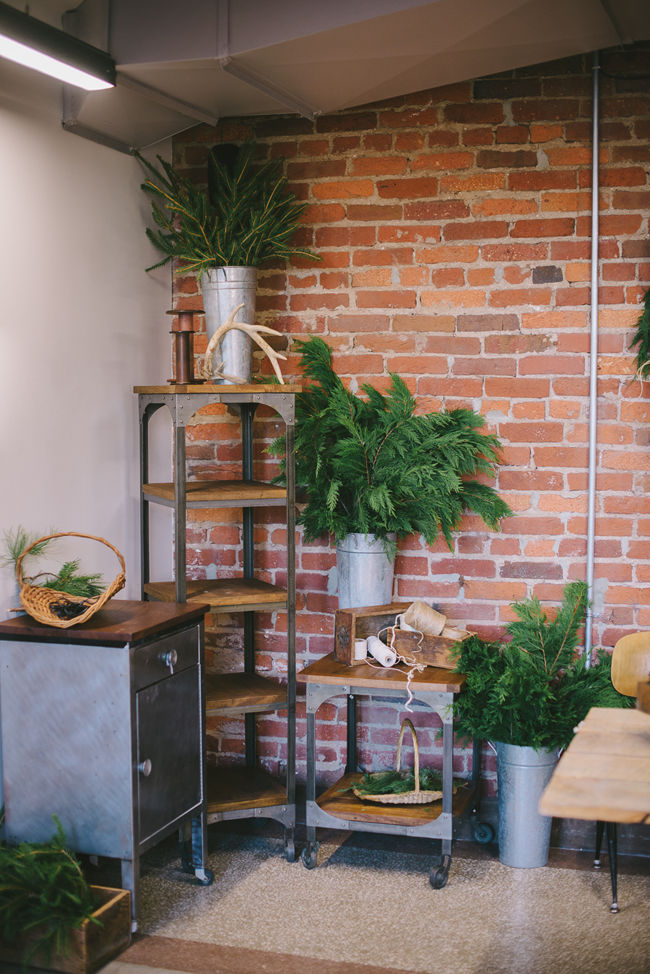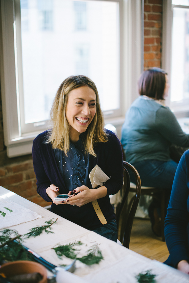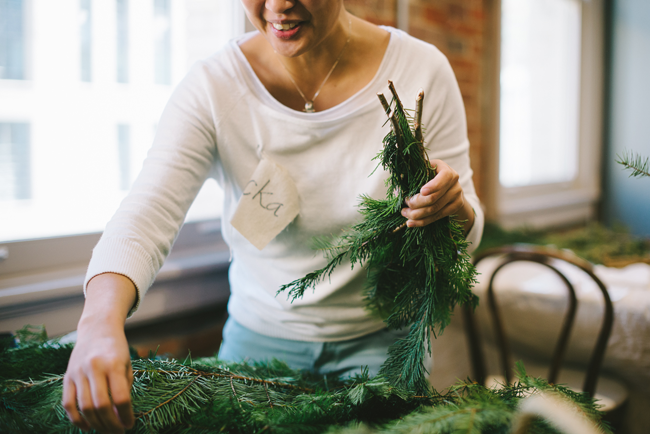 Last month, Sweet Root Village and I hosted the last Kinfolk workshop of 2013. A handful of us gathered at The Loft at 600 F in DC for an afternoon of making natural home decor, sharing a simple lunch, and generally, having a wonderful time. These photos are from the workshop portion of the morning…all captured by Sweet Root Village. My mom’s in that first picture – isn’t it lovely? My mom and aunt spoiled me and drove down from NJ to help out!