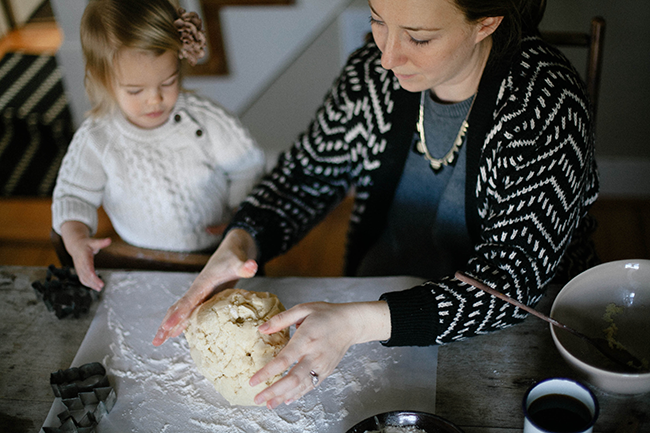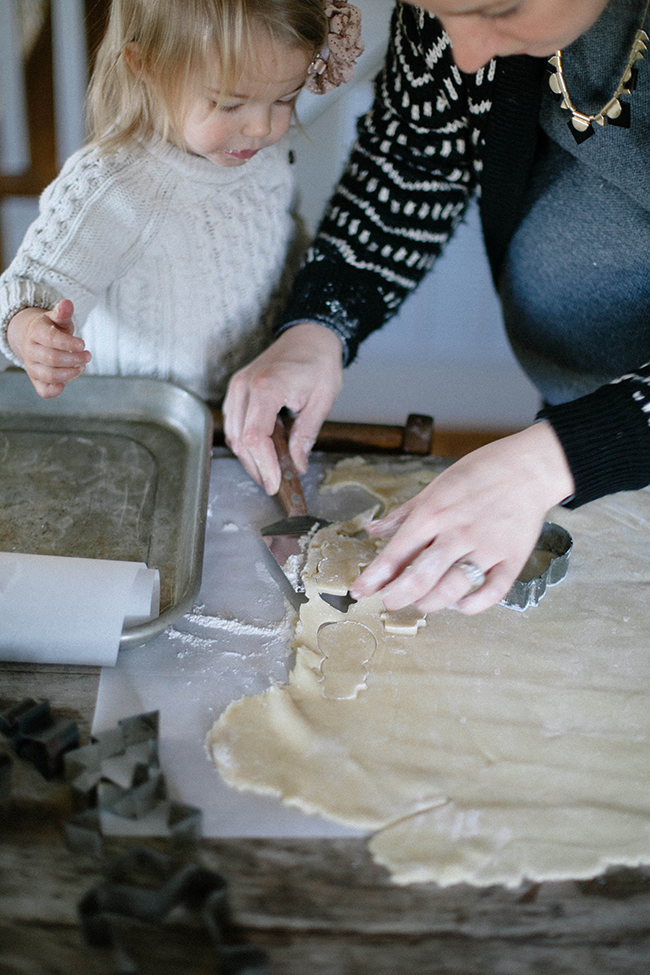 Back to the cut-out cookies, though. My favorite parts about the recipe card my mom sent over is that it has typewriter print, and my nana’s handwriting at the bottom: “Make TRIPLE,” and is smudged with years of butter, flour, and eggs. Zoe and I had so much fun making these cookies together. She’s at the age where she just wants to be involved with everything happening in the kitchen. She hardly had the patience to wait for me to roll out the dough. And once she realized that raw cookies taste good (delicious, in fact), she couldn’t stop shoving the dough into her mouth. And the sugar. Oh, the sugar. She mounded it on those cookies (the sugar actually burnt when we baked those cookies, which is why they’re not pictured, haha) and had so much fun doing so. I’m so blessed by this little girl, and am looking forward to the years and years of beginning/continuing traditions and learning and memory making together!