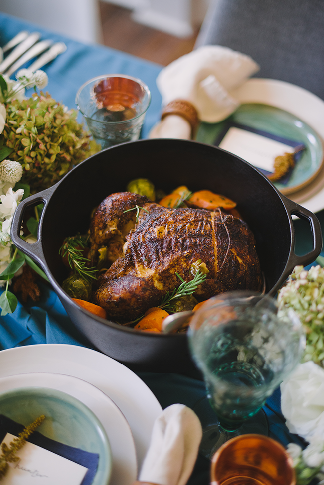 Earlier this year I put together this wintry tabletop for The Local Palate (photographed by Sweet Root Village), and it’s currently on newsstands (for all my local friends, Wegmans and Harris Teeter carry the magazine!). I think this table would be simply gorgeous for a New Year’s Eve dinner party, with the metallic and pops of color! This peacock blue tablecloth is my new favorite. I picked it up at Crate & Barrel outlet, and it’s so luxurious and adds just the right amount of texture and color. I even packed it up and mailed it to my sister to use on her Thanksgiving tabletop!
